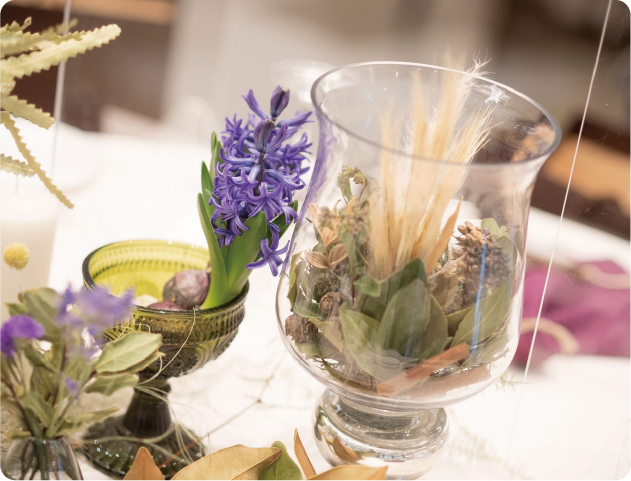 私どもシャーベットには、デザイン専門のスタッフが多数在籍しております。ご要望、ご予算に応じて、お客様のご要望、想いを一緒にプランニングいたします。シャーベットにある様々なお花、素材から世界に一つだけのデザインをお客様と共に創り上げる事が何よりの喜びです。まずはお気軽にスタッフまでご相談くださいませ。